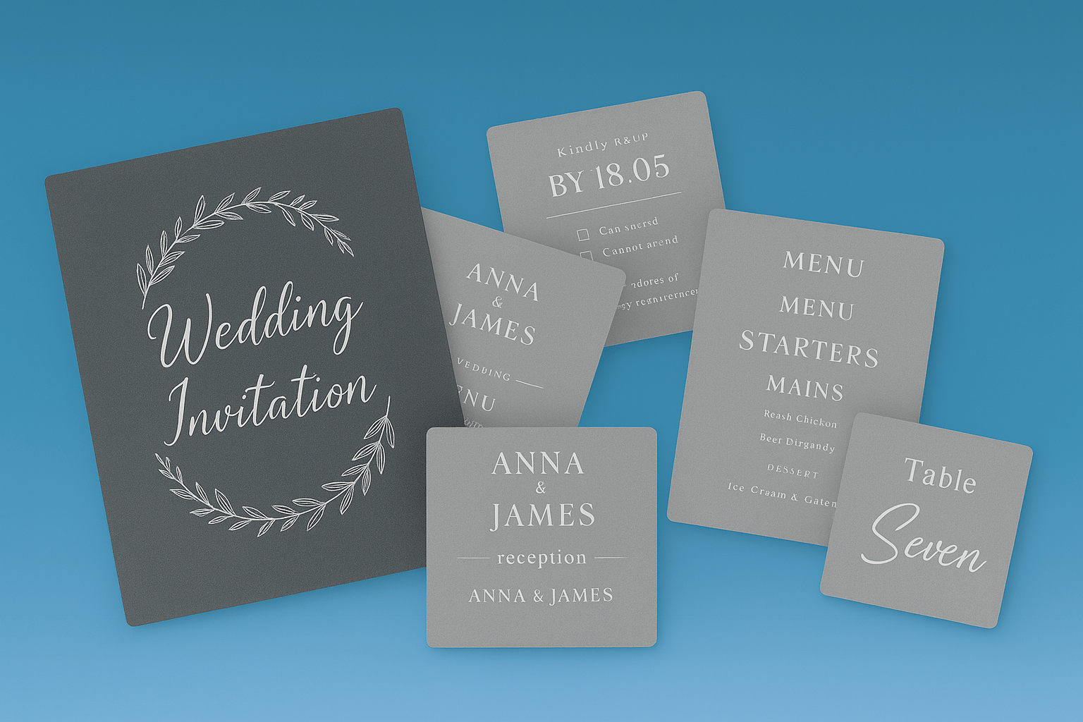 Menus, Place Cards & Table Plans – Add elegance with white-only print for a minimalist style.