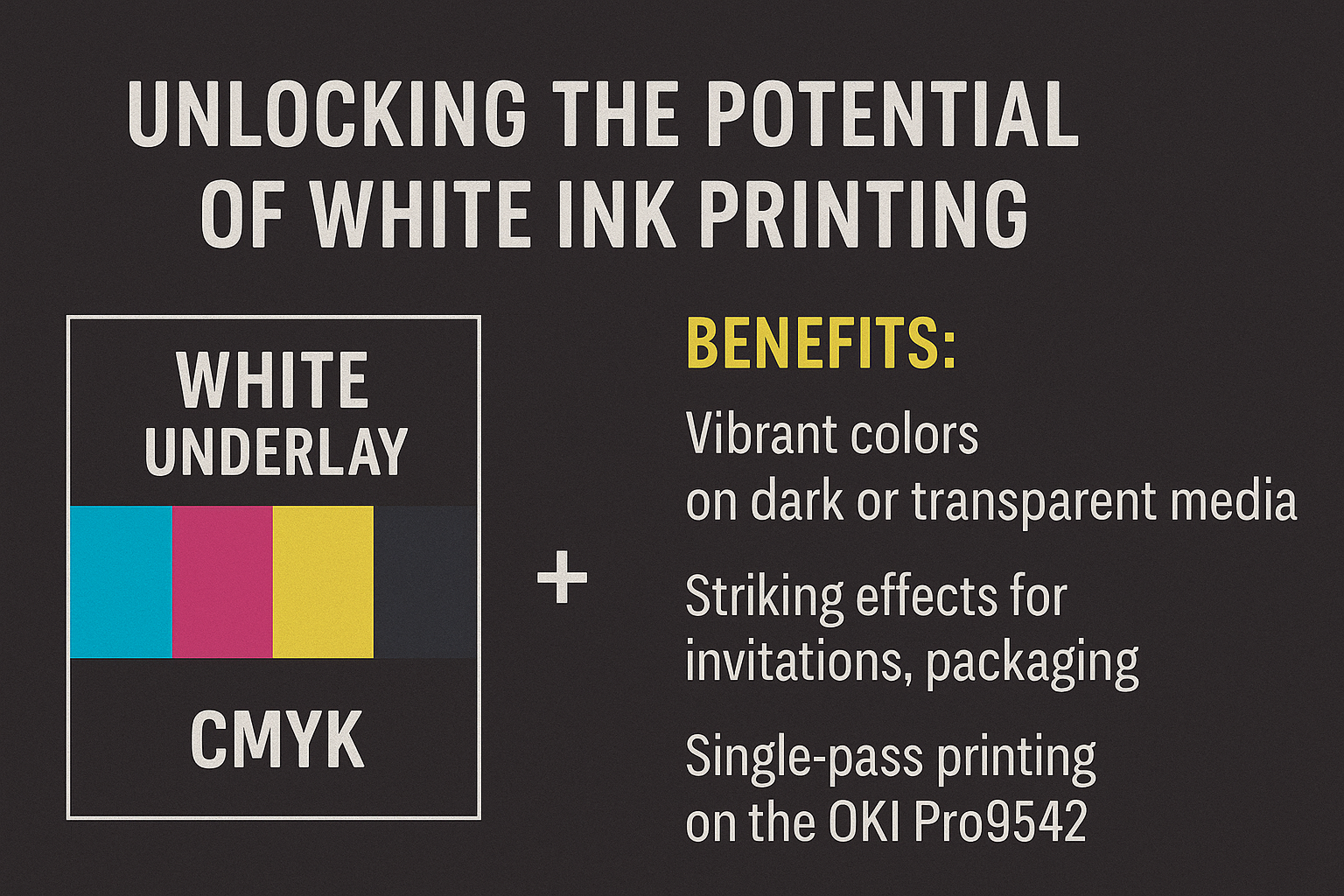 Traditional CMYK printing struggles on dark or coloured media. With the OKI PRO 9542, a white underprint acts as a base layer, so colours appear vibrant and accurate, even on black card or clear pouches.