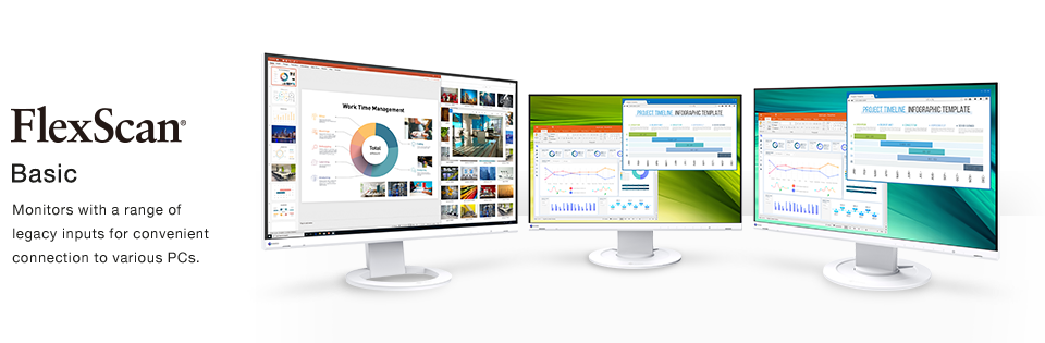 EIZO FlexScan Basic monitors combine reliability and everyday performance for work, study and general use. With clear visuals and robust design, the FlexScan Basic range offers dependable screens that fit perfectly into any workspace.