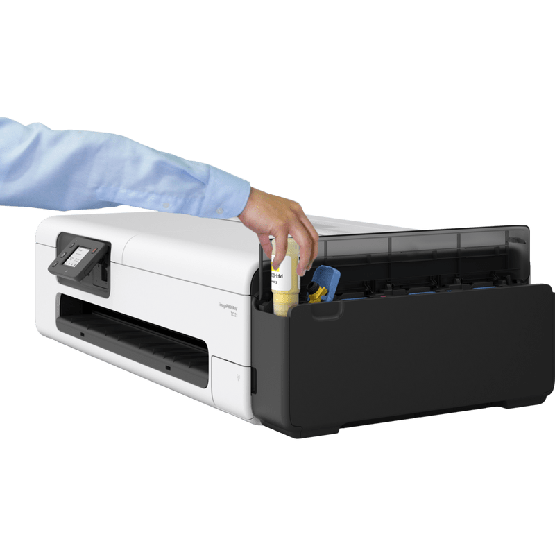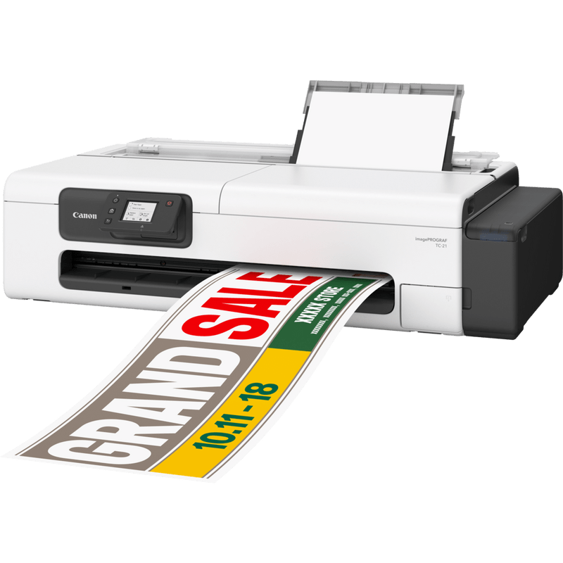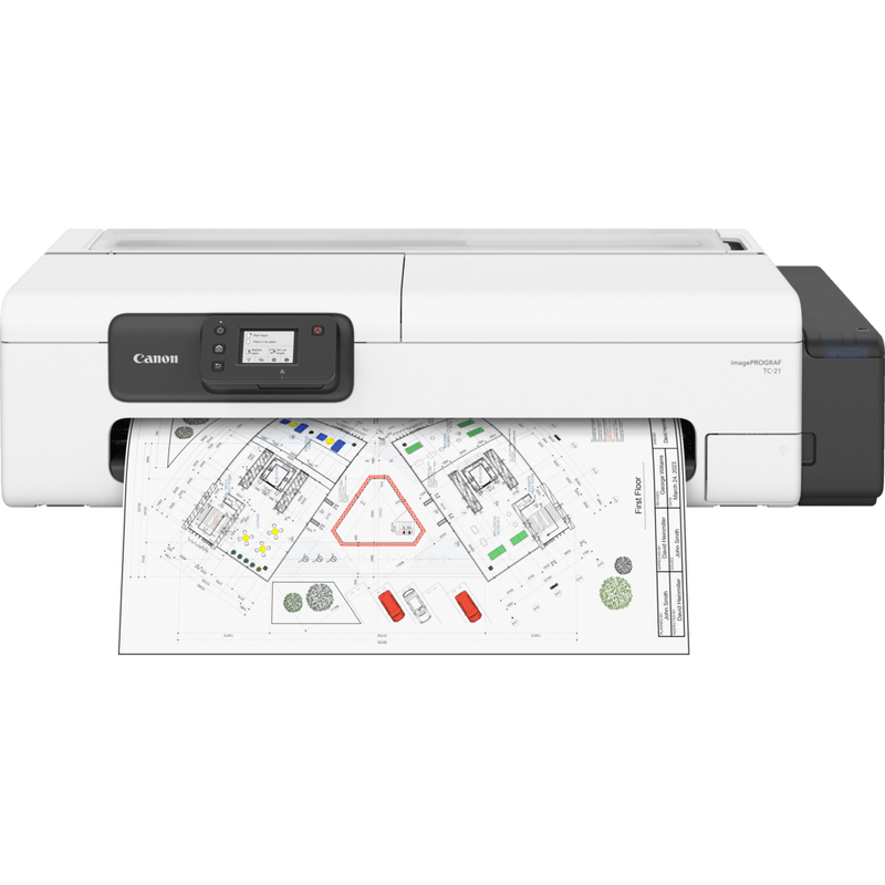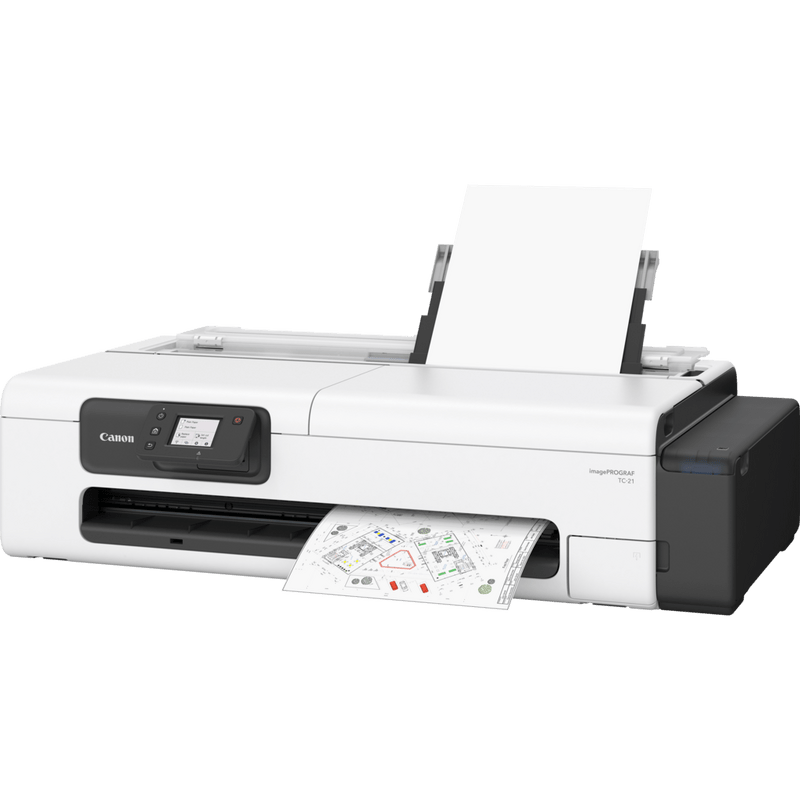 The Canon imagePROGRAF TC-21 is a compact 24″ desktop large-format printer for CAD and posters — easy to run, quiet in shared spaces, and affordable to own.