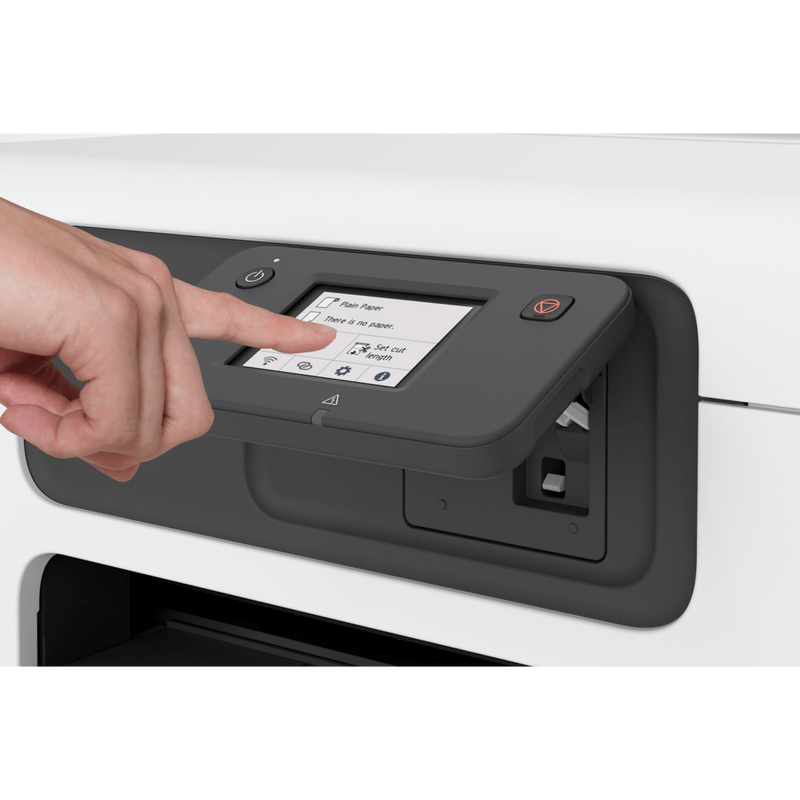 - 4-colour pigment inks: crisp lines and dense colour for drawings and signage.