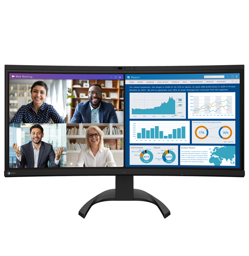 The EIZO EV3450XC combines premium display quality with comprehensive USB-C docking functionality. Designed for modern professionals who demand seamless connectivity, exceptional ergonomics, and sustainable design.