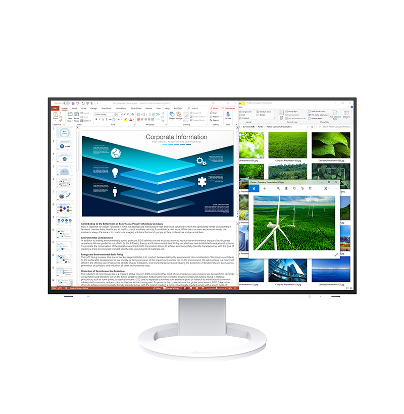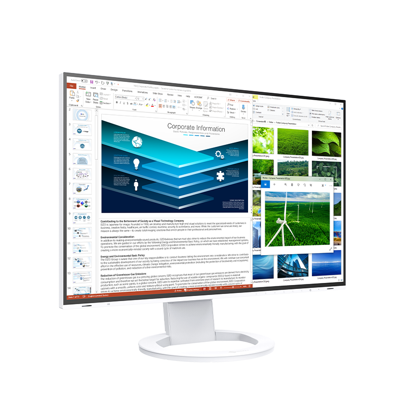 EIZO's commitment to sustainability is evident in every aspect of the EV2485. The monitor uses recycled materials, molded pulp packaging instead of styrofoam, and is certified by TCO, EPEAT, and Energy Star. With low power consumption, it helps reduce your carbon footprint while delivering professional performance.